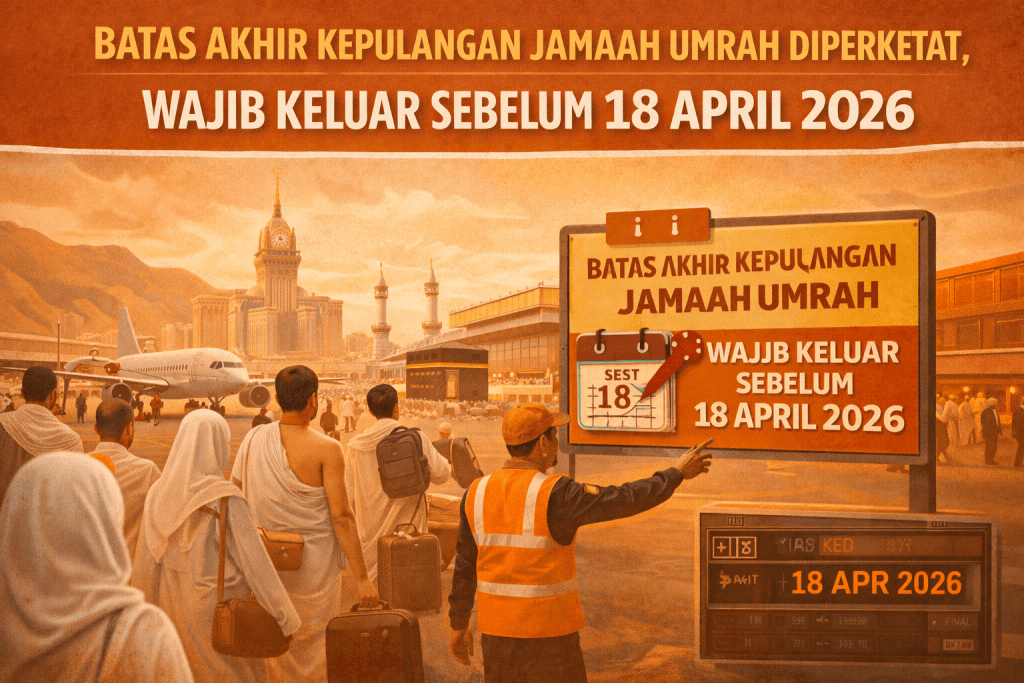 Pemerintah Arab Saudi menetapkan kebijakan baru terkait batas akhir kepulangan jamaah umrah menjelang musim haji tahun 2026. Dalam kebijakan tersebut, seluruh jamaah umrah diwajibkan meninggalkan wilayah Arab Saudi paling lambat tanggal 18 April 2026.