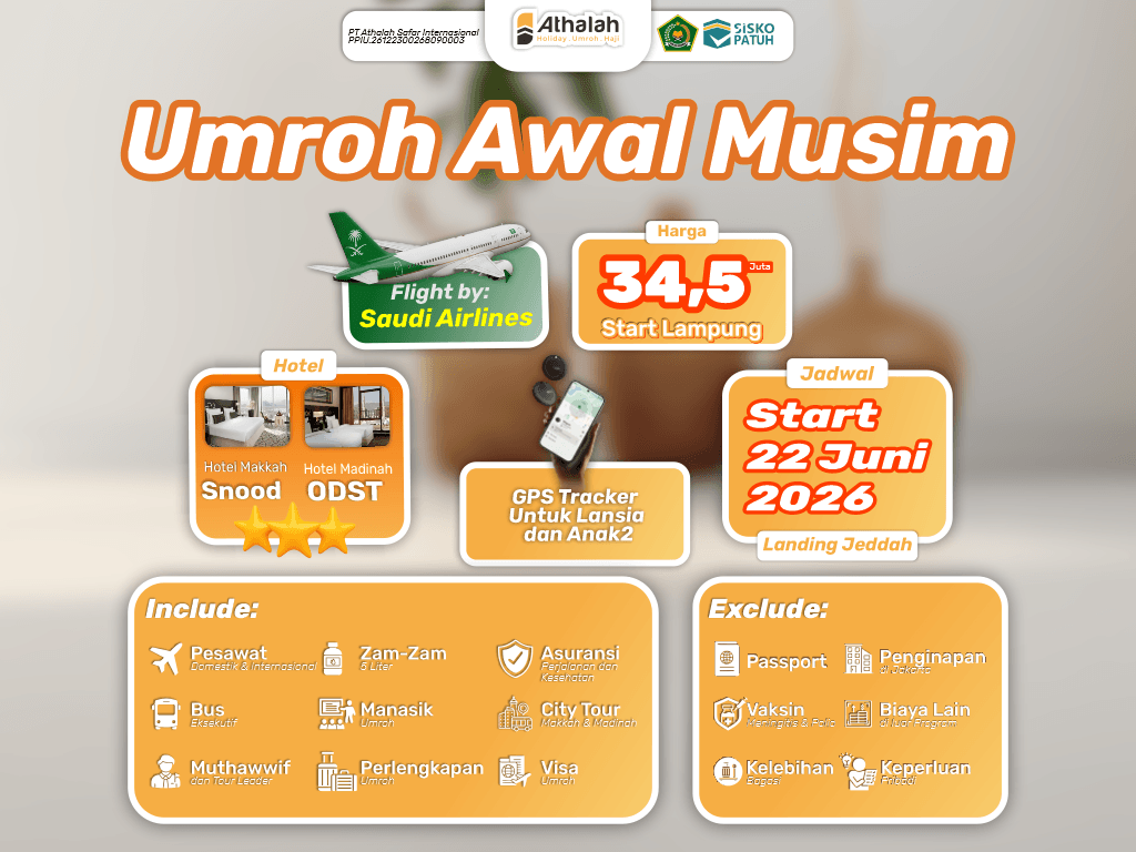 Komponen Biaya: Harga paket belum termasuk biaya pengurusan paspor, vaksinasi (Meningitis/Polio), dan hotel transit di Jakarta (kecuali diwajibkan oleh jadwal penerbangan).